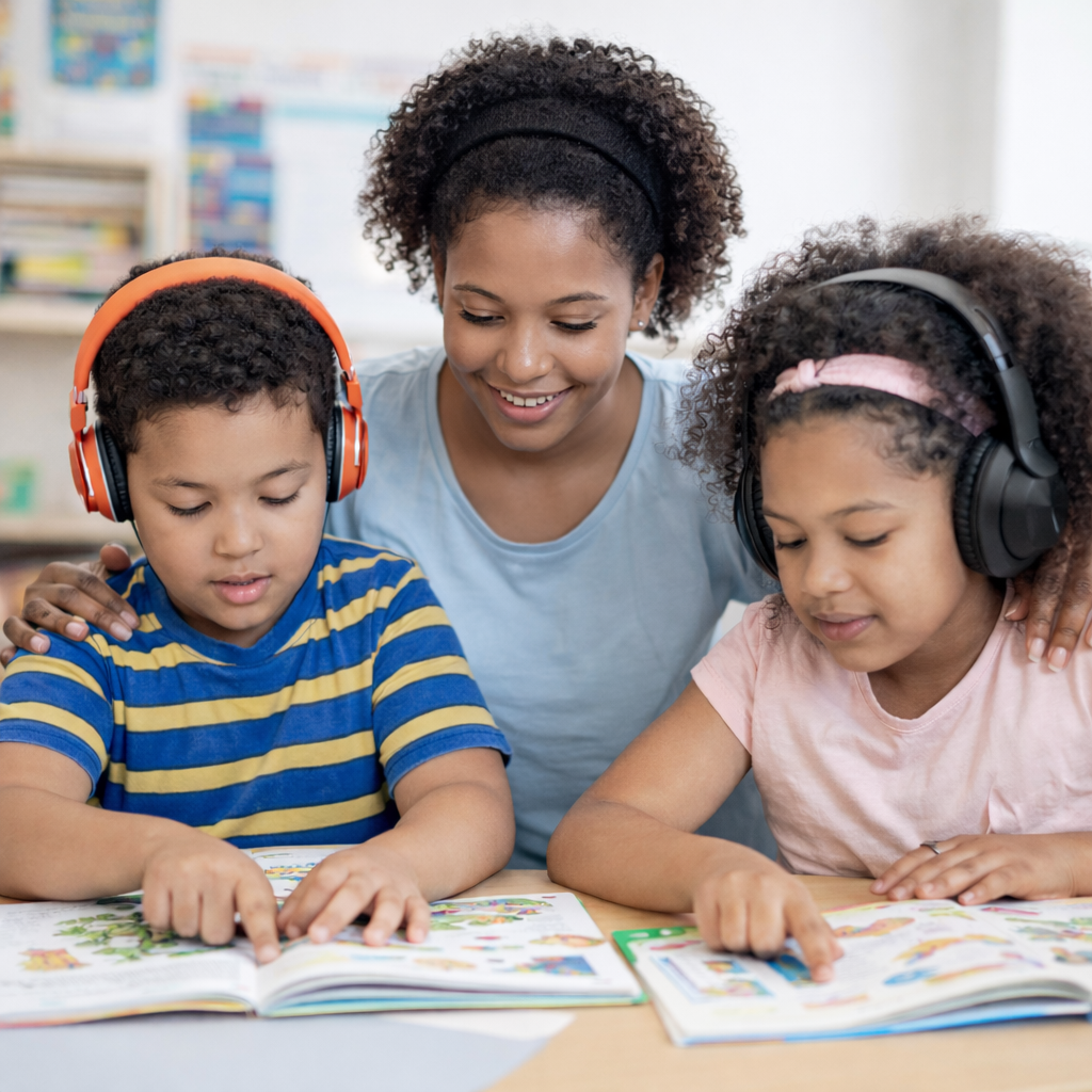For families with younger learners (Kindergarten and 1st grade), the program offers parent training, coaching, and structured resources to equip caregivers with the tools needed to confidently support their child’s literacy development within the home learning environment.