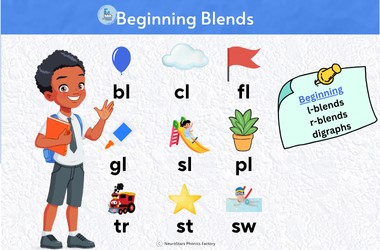 Displays common beginning blends and digraphs to support early word reading.